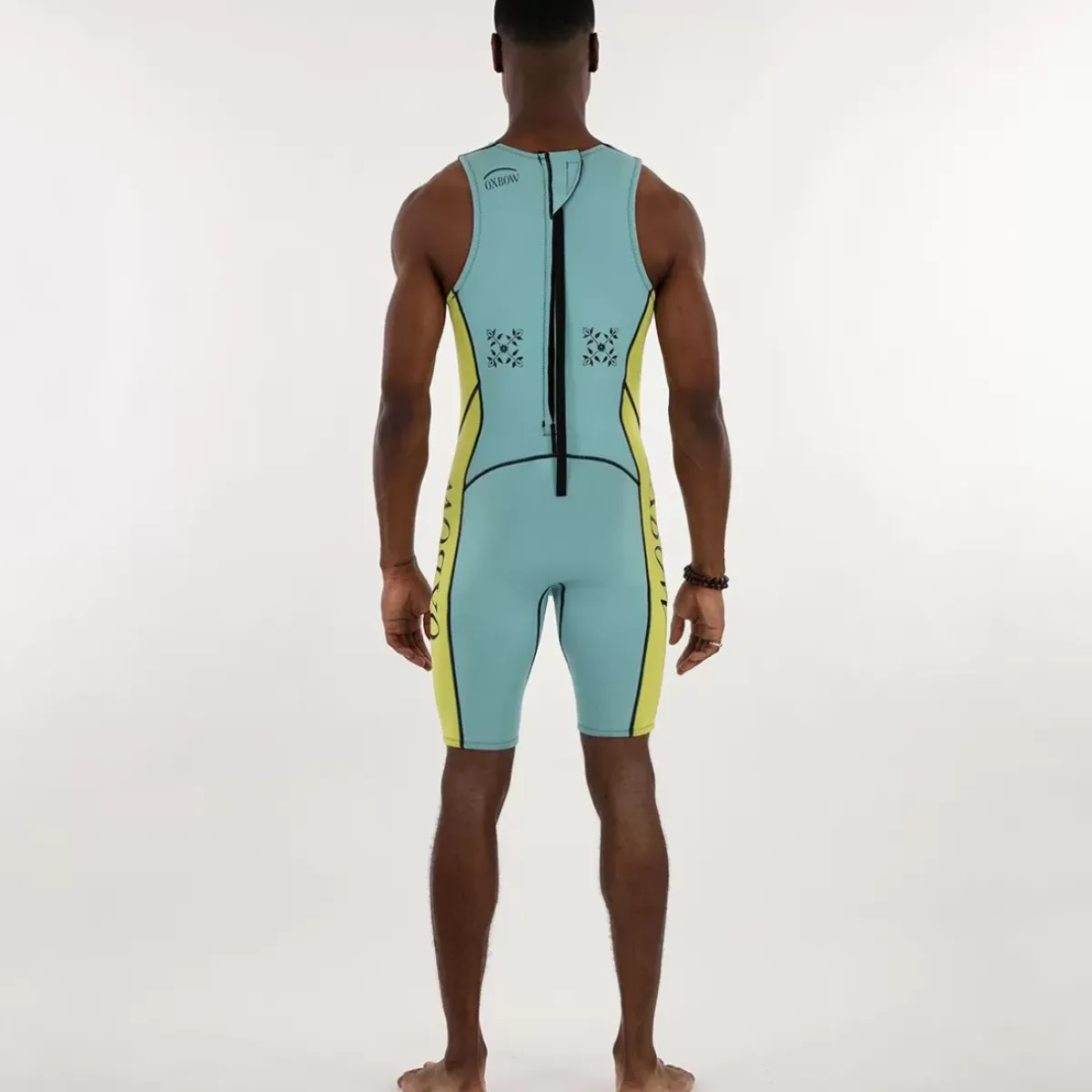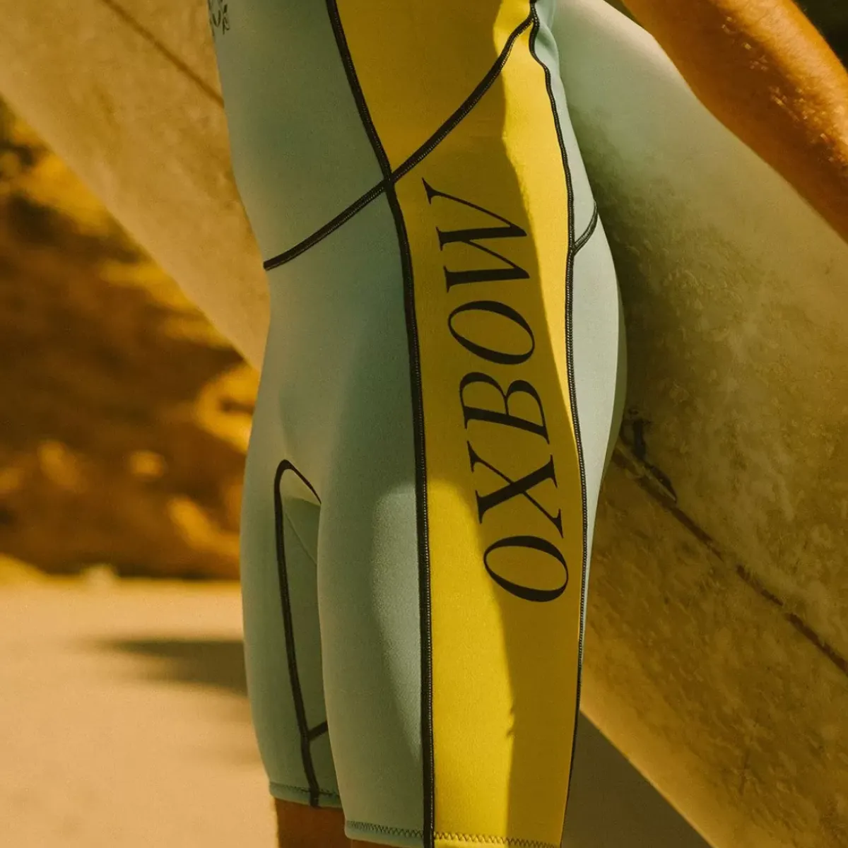 It looks like it’s straight out of the 80s!! 2mm Shortjohn wetsuit, for warm water surfing. In Limestone neoprene, the interior and exterior materials are recycled and laminated with a solvent-free AquaA™ glue.