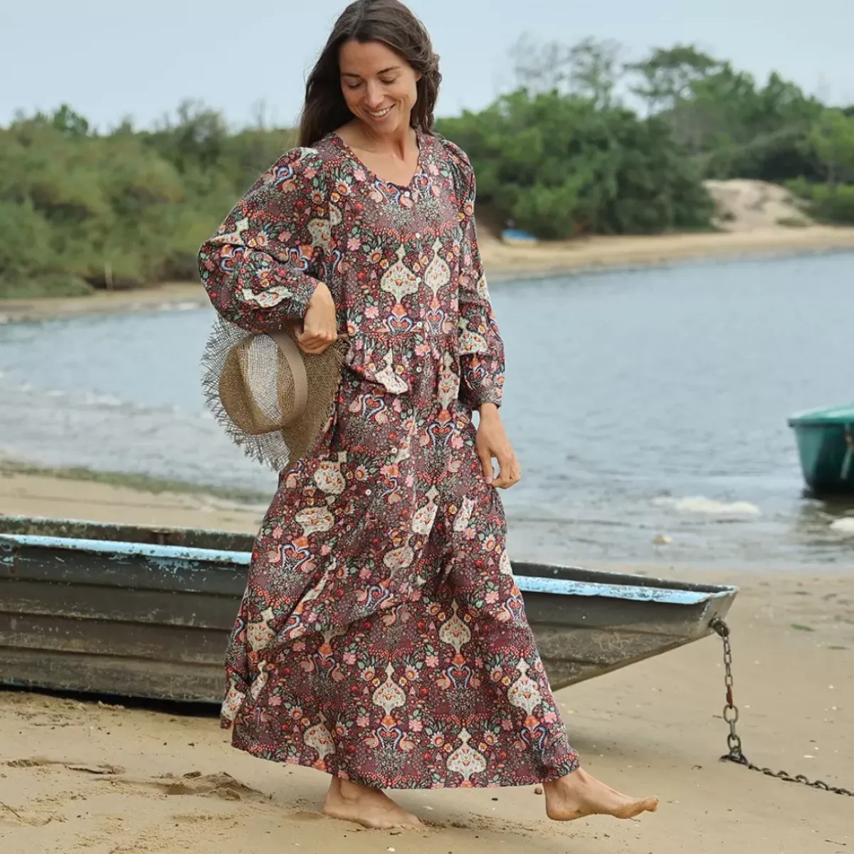 This long printed viscose dress will accompany you all Summer long. With its long sleeves and its buttoned opening, the DESMOND dress will be your best ally for long Summer days.