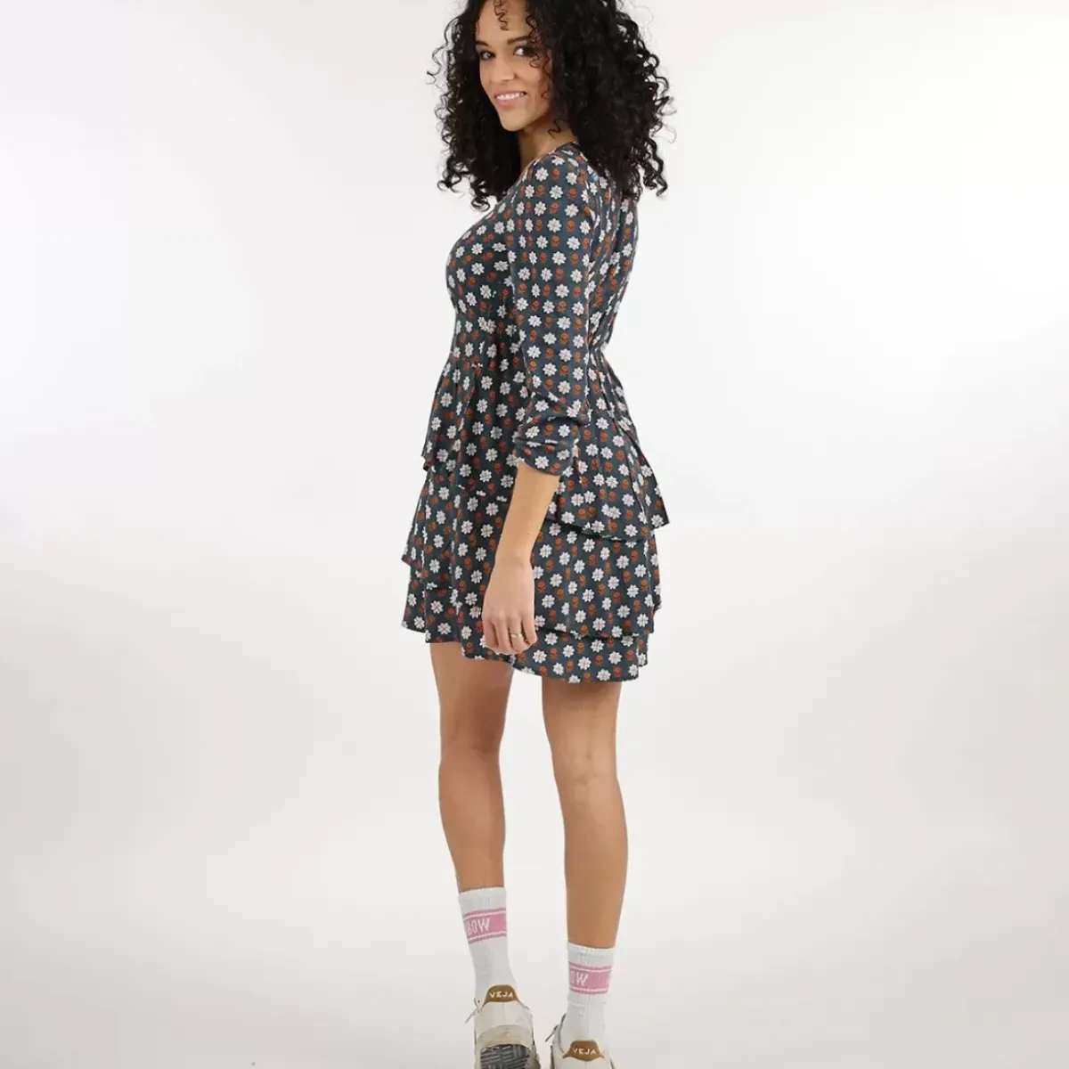Printed ruffle dress