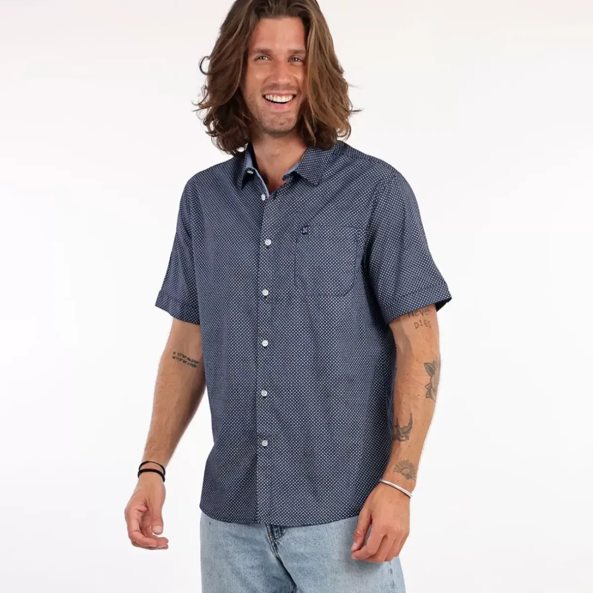 The CHACKS shirt has microprinted patterns for the fun side. On the chest, you can find a patched pocket with the print of the shirt.