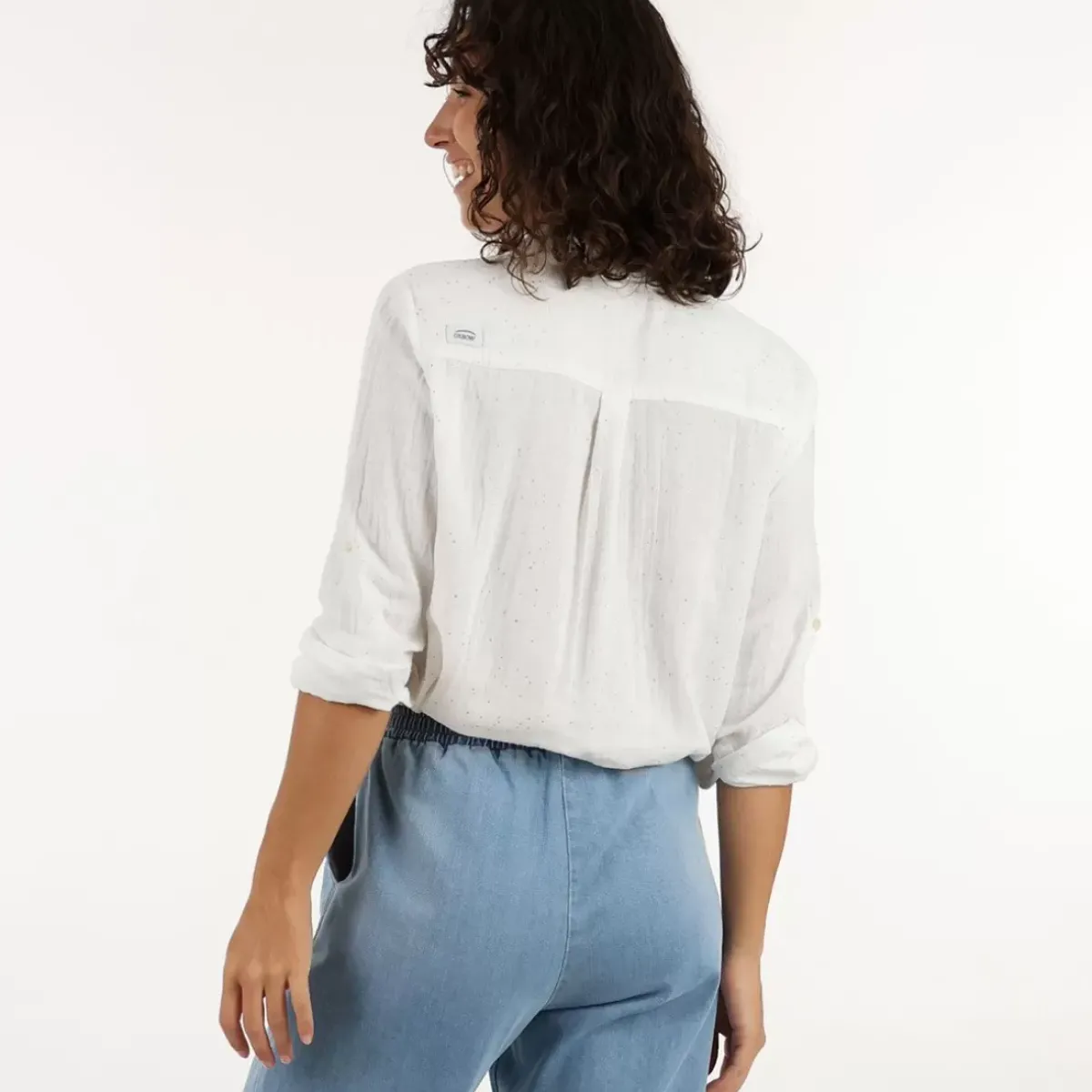 The CHARLIE is a cotton gauze shirt with foiled allover print. Perfect to shine !