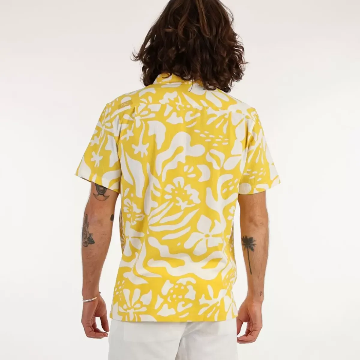 In cotton crepe fabric and its allover hawaiian print, the CONTIGO short sleeves smells like summer.