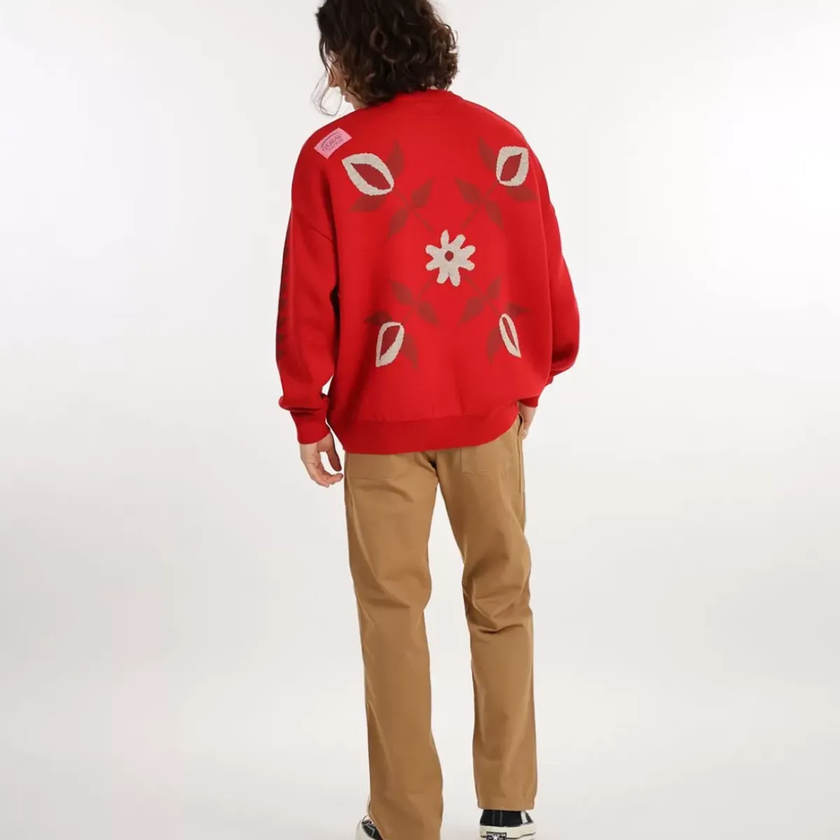 This double jacquard merino wool jumper features Collector’s classic retro cut as well as a shoulder pad and the STAY ALIVE mantra, well known to aficionados.