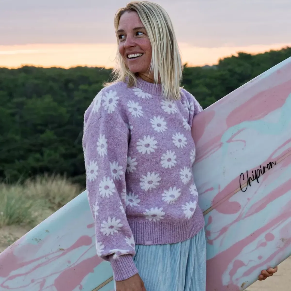 Thick but light knit sweater with flower patterns, the PANDORA is soft and warm in its oversized cut. A real kiss!