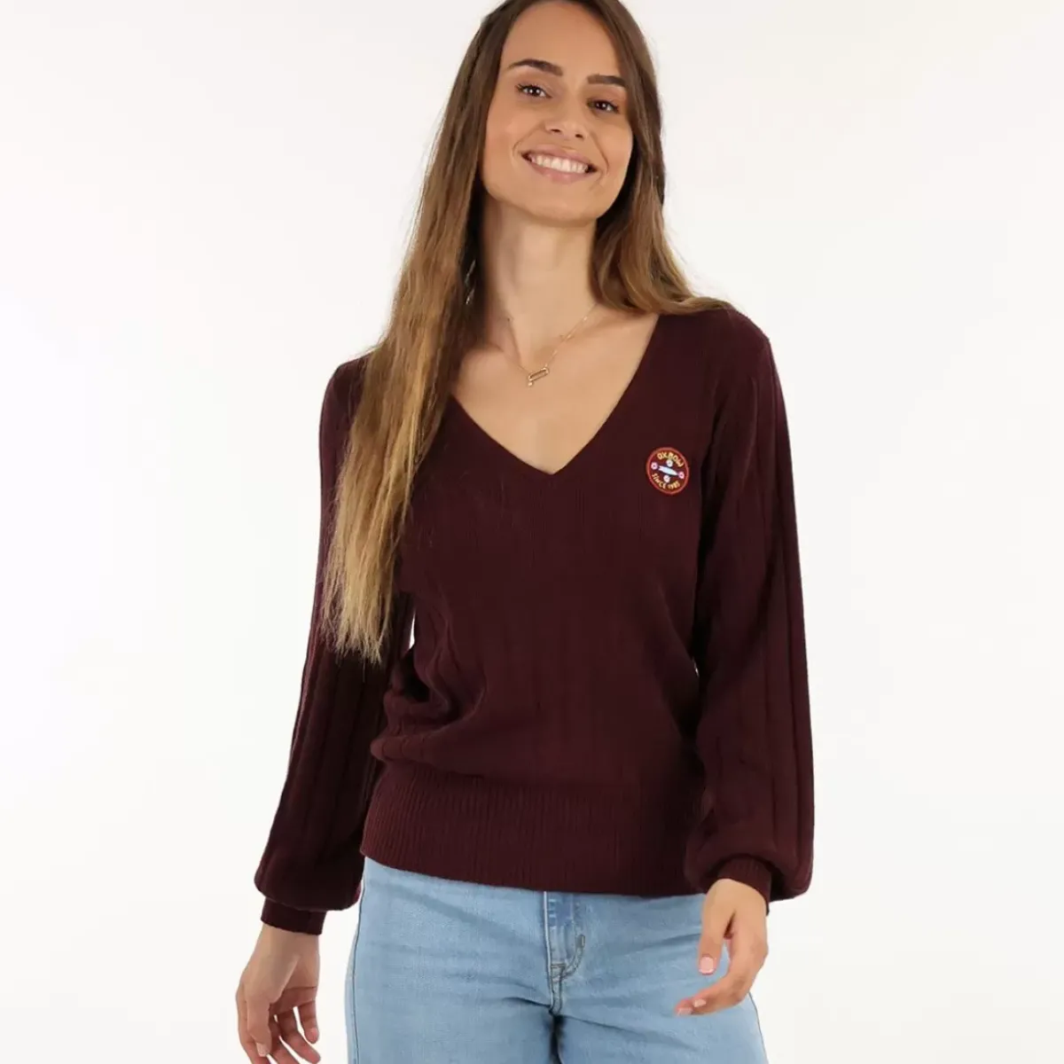 The PEGASE is a sweater with a V neck collar and slighty loose straight cut. It is proposed in season colorways and has a little Oxbow badge on the chest.