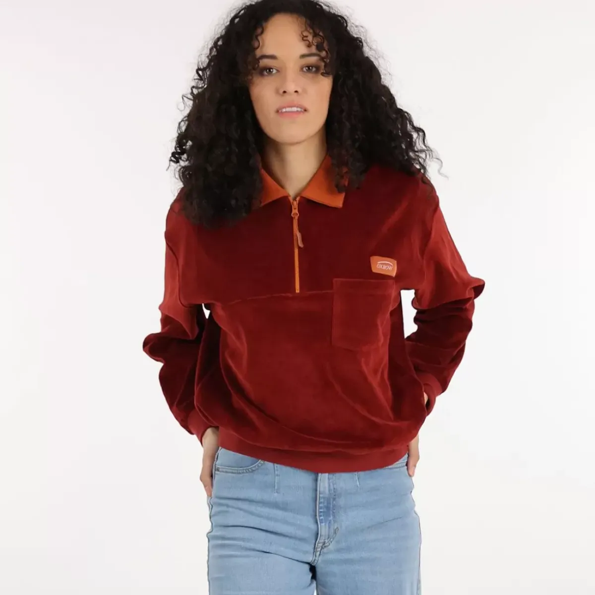 Velvet ribs demi-zip sweater