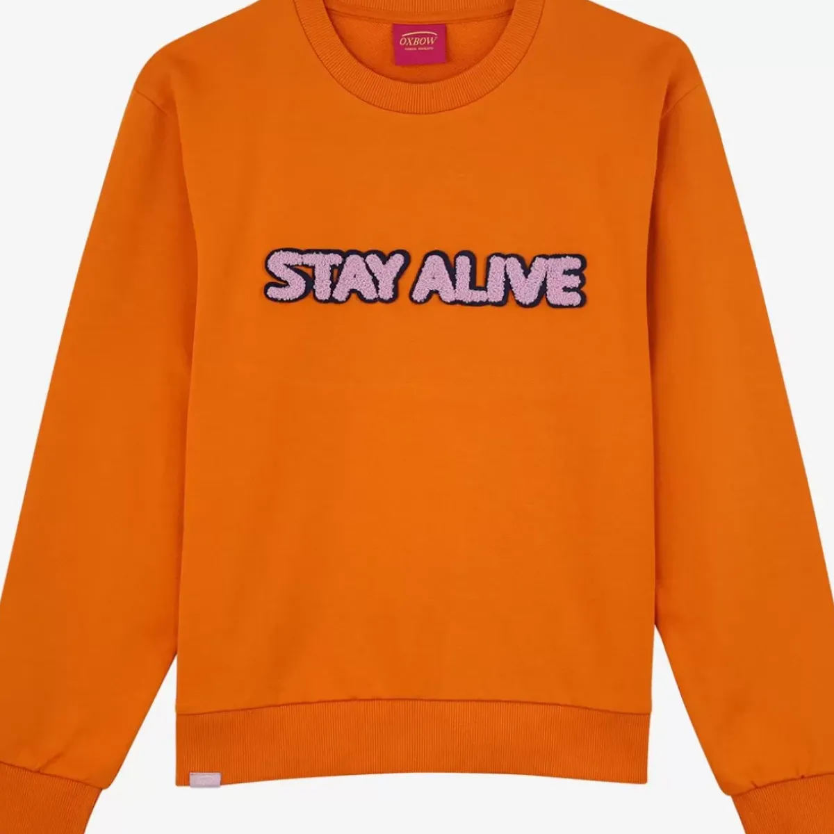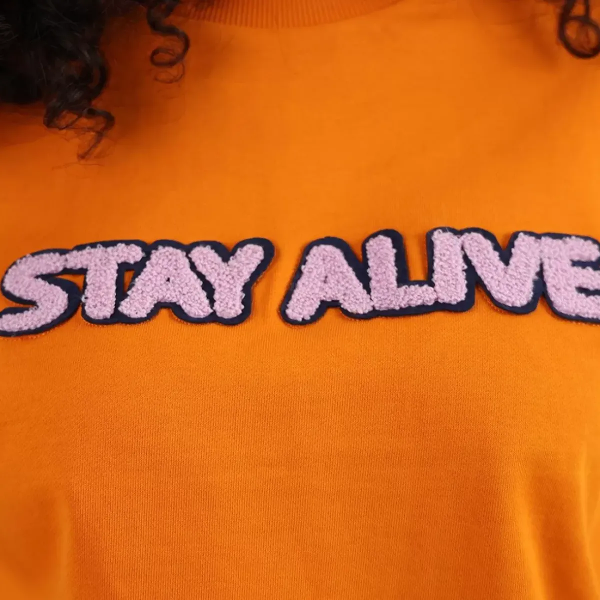 Wording flocked on sweatshirt