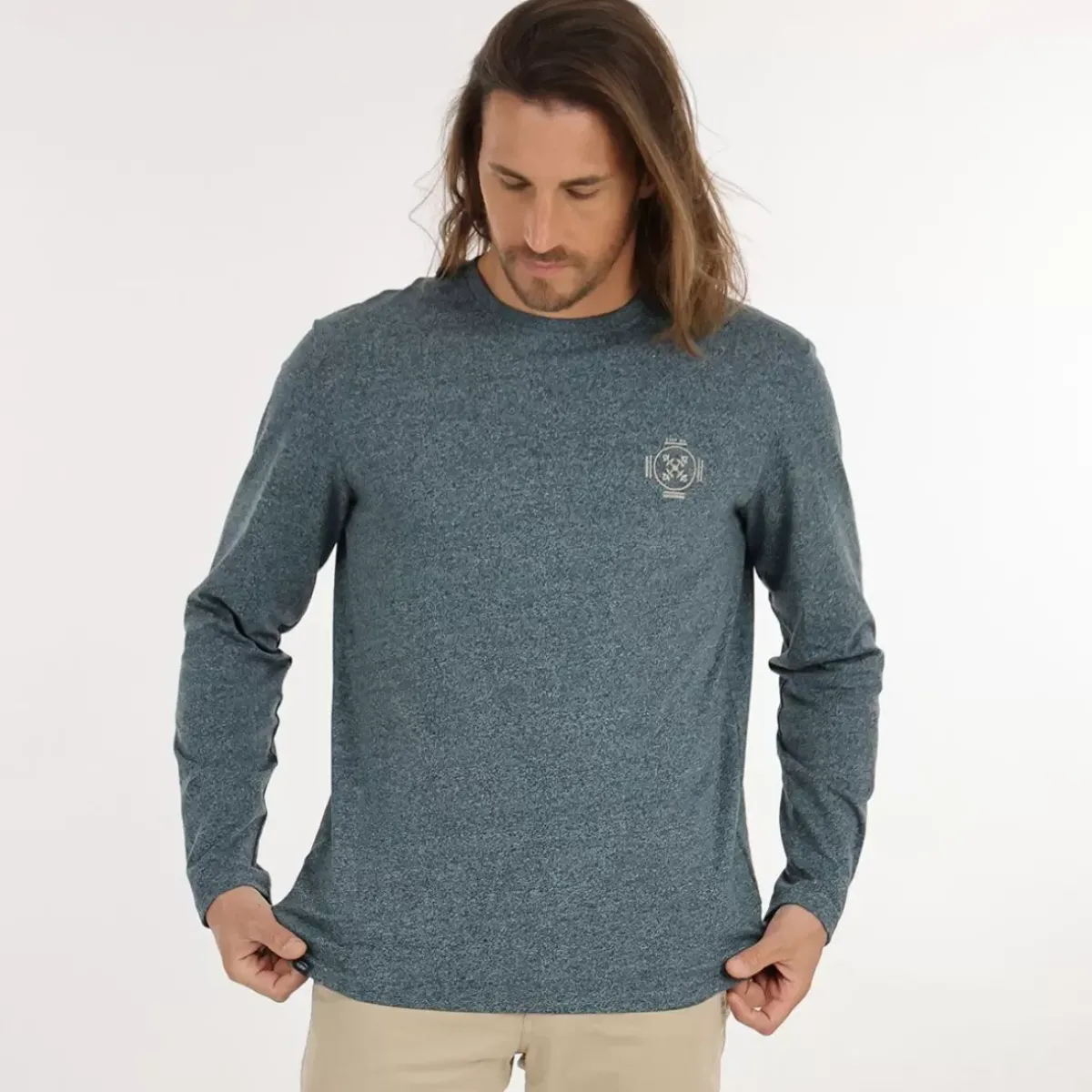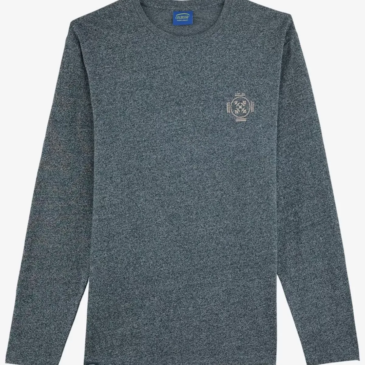 This long-sleeved T-shirt is made from a recycled material and marbled to give a mottled effect. It has a 1 color pattern on the back.