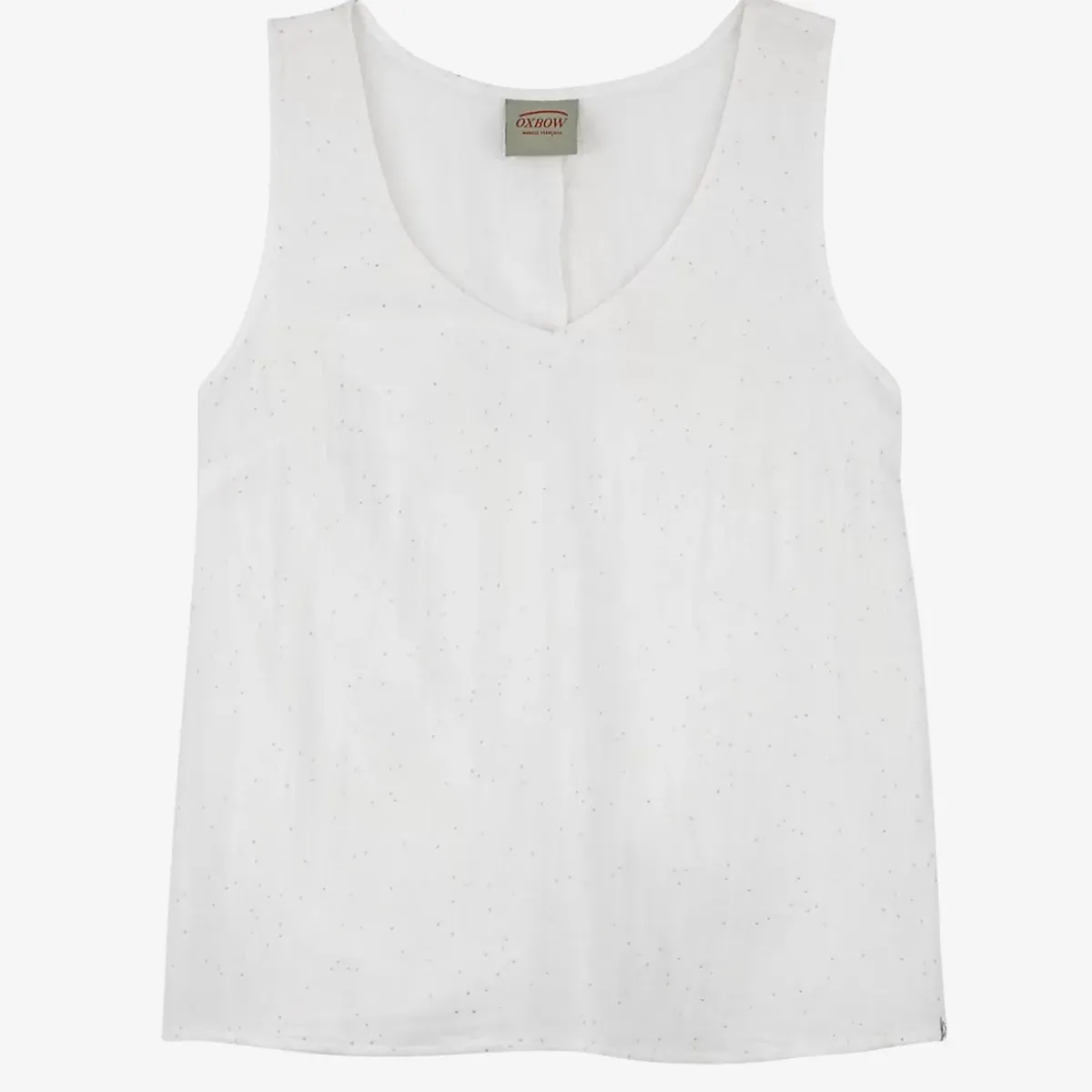 The CALLUM tank top in cotton gauze has a golden polka dot print and a V-neck.