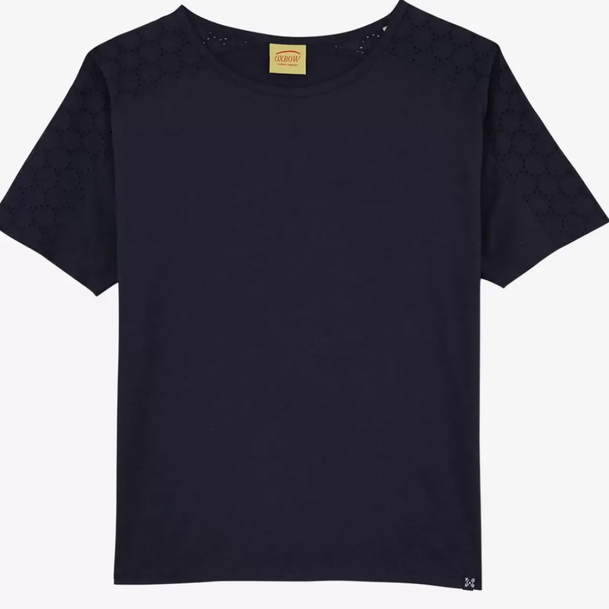 Fluid tee-shirt yoke eyelet lace