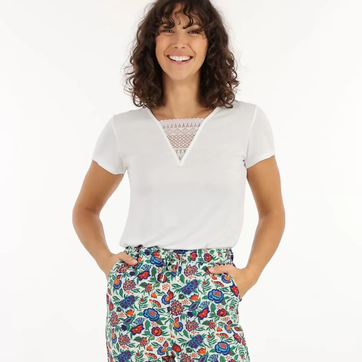 The TIA t-shirt has a lace insert on the neckline and back and offers you a feminine style while remaining casual.