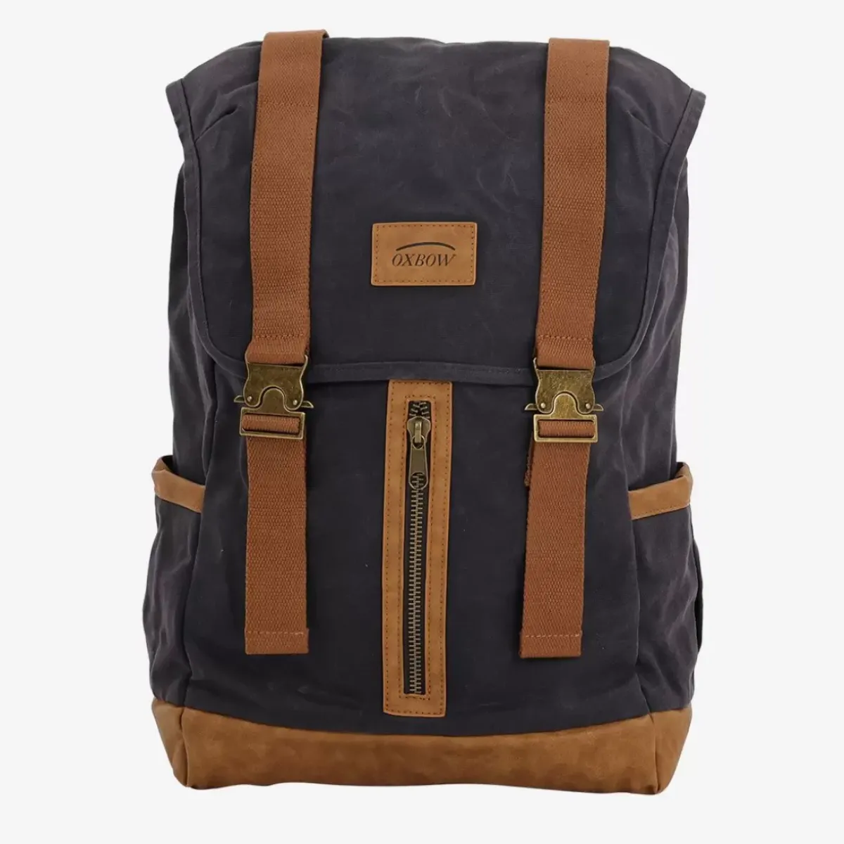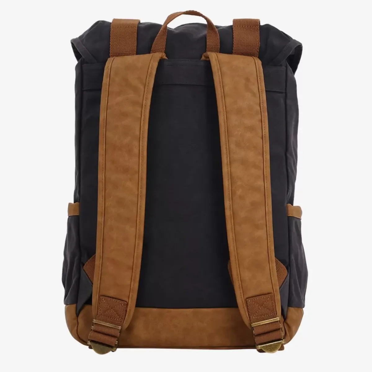 This retro-looking cotton backpack has many pockets including a computer compartment. Perfect for everyday use.