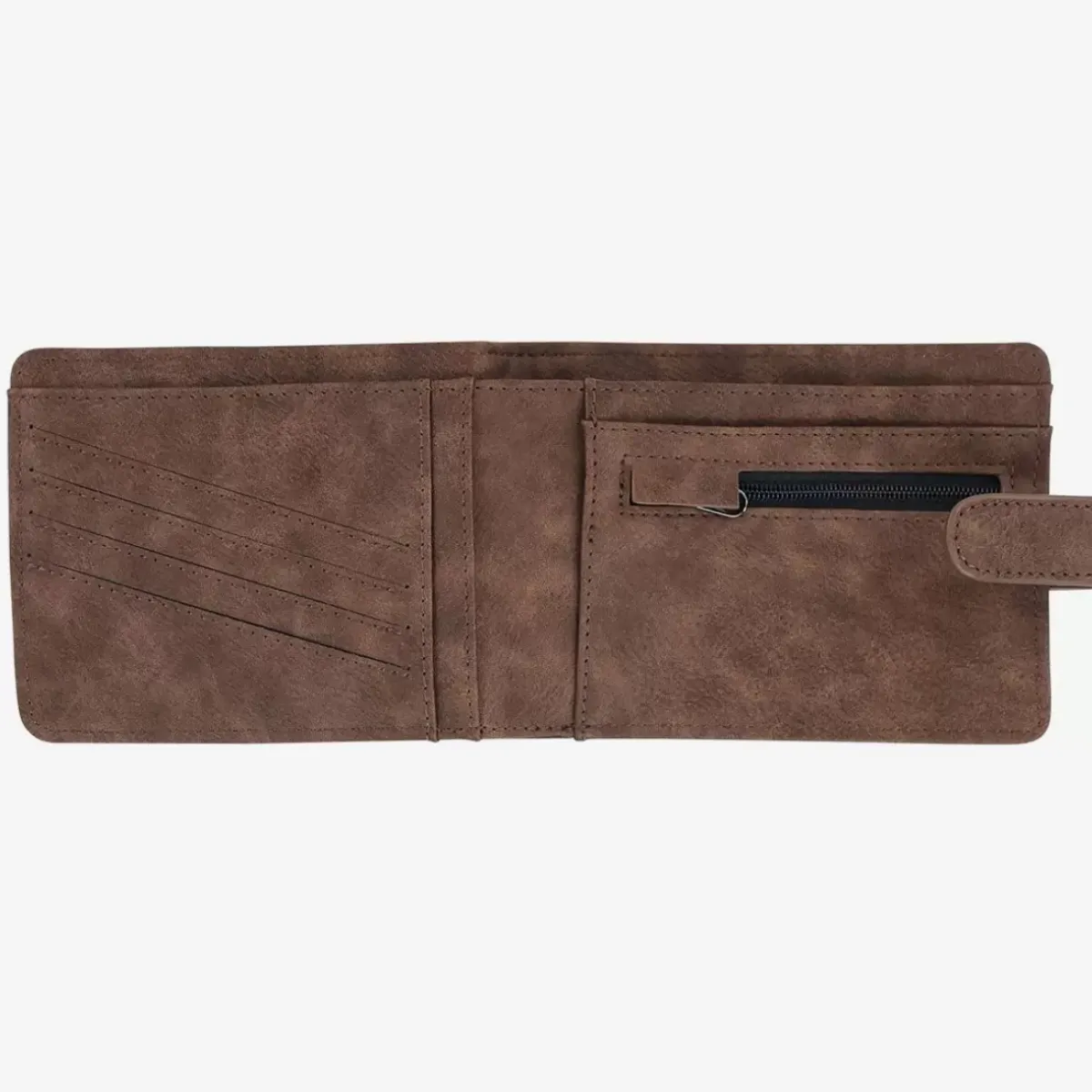 Wallet with snap closure, inside zip to slip in your change and a bill compartment.