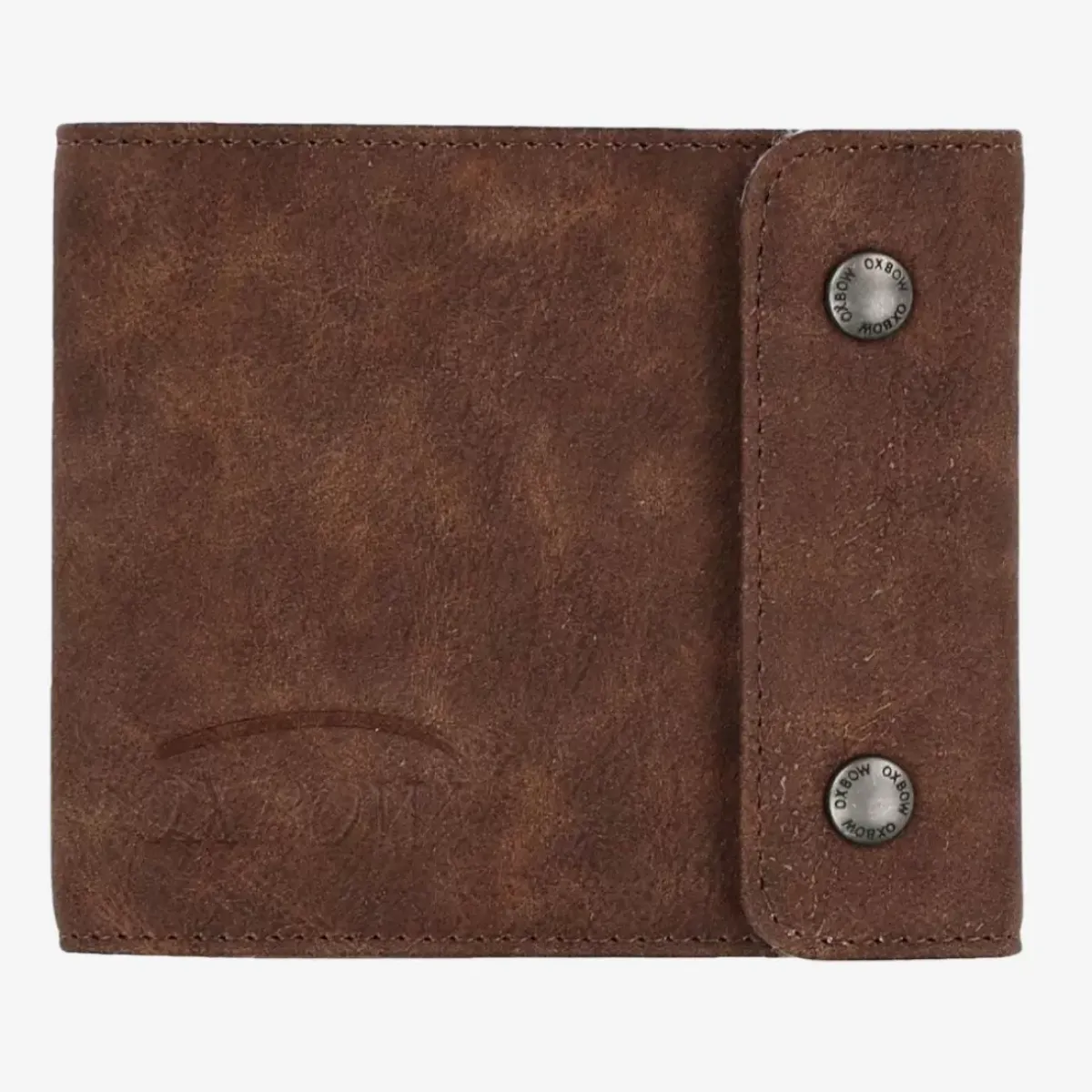 The FLAMI is a card holder with note compartment and felt lining. A snap button closure and an embossed and printed Oxbow logo complete this product.