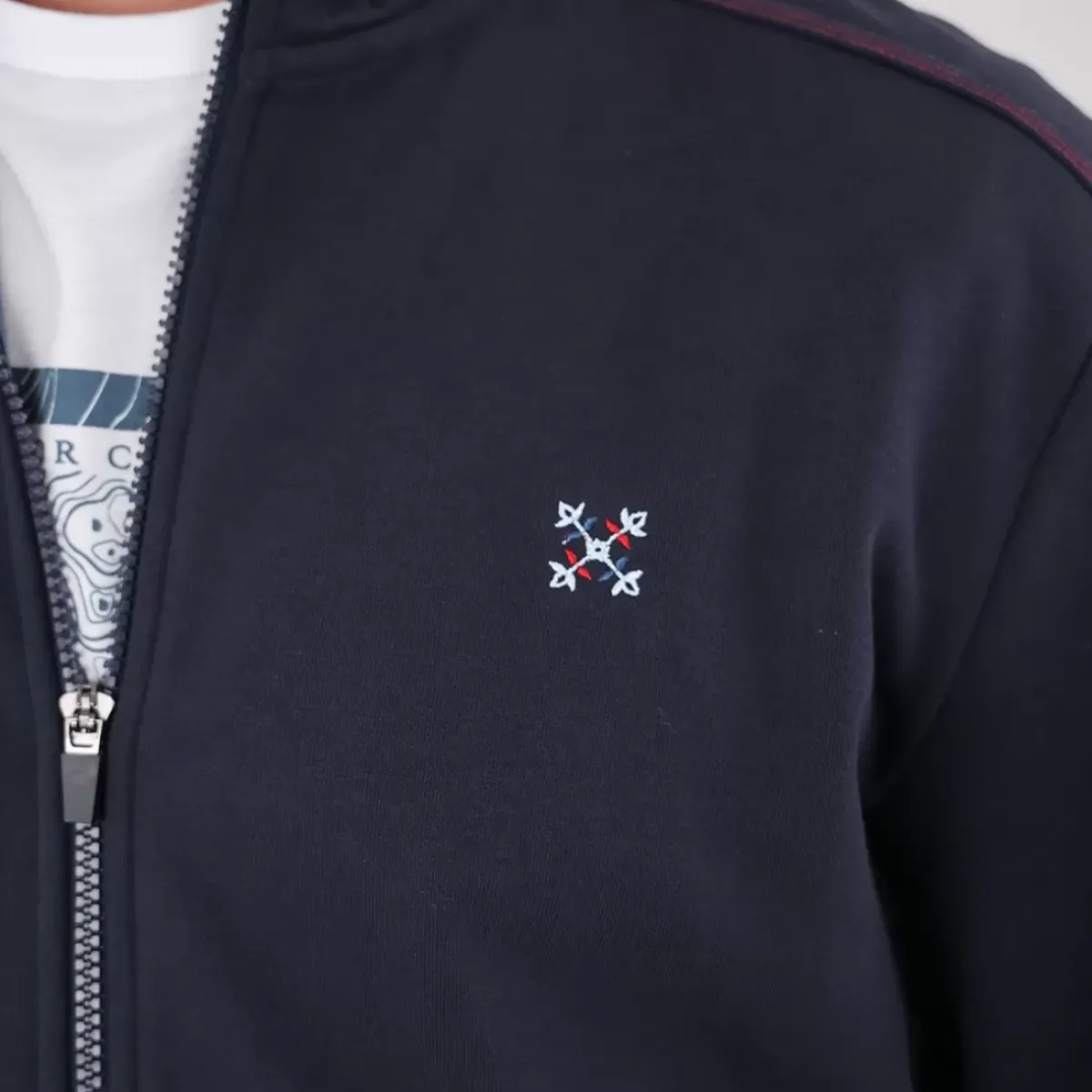 Cotton straight fit zippered sweatshirt.