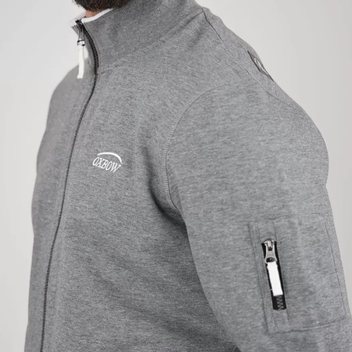 Cotton straight fit zippered sweatshirt.