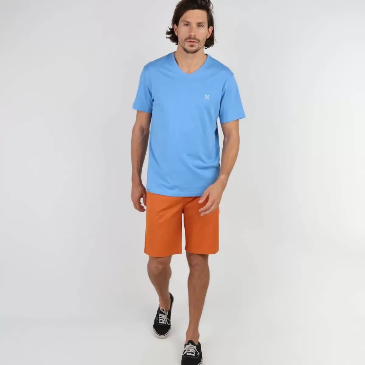 Cotton v-neck short sleeves straight fit tee-shirt.