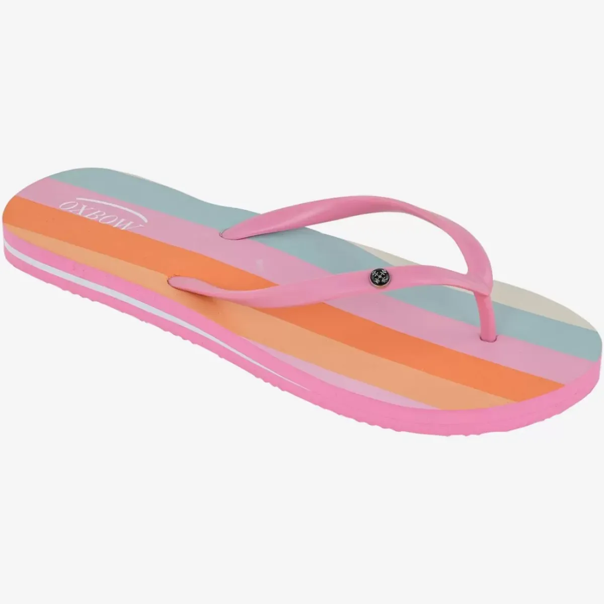 With the collection’s prints, VIRTILIM flip flops will definitely match your Oxbow outfit. Its iridescent strap and metal Oxbow rivet add a feminine touch.