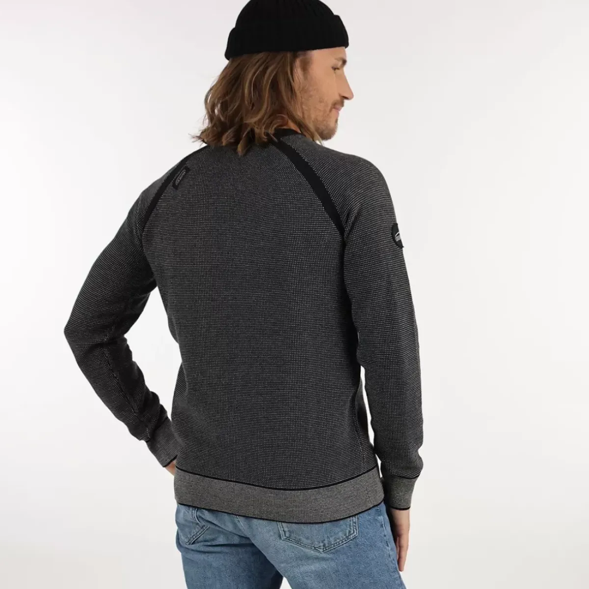 The PASTEIN jumper is in two-tone jacquard knit with piqué effect.