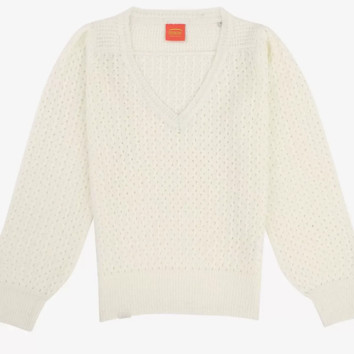 The PULMIN is a sweater designed with a fancy knit and has an open stand-up collar, not to mention the woven Oxbow patch on the shoulder.