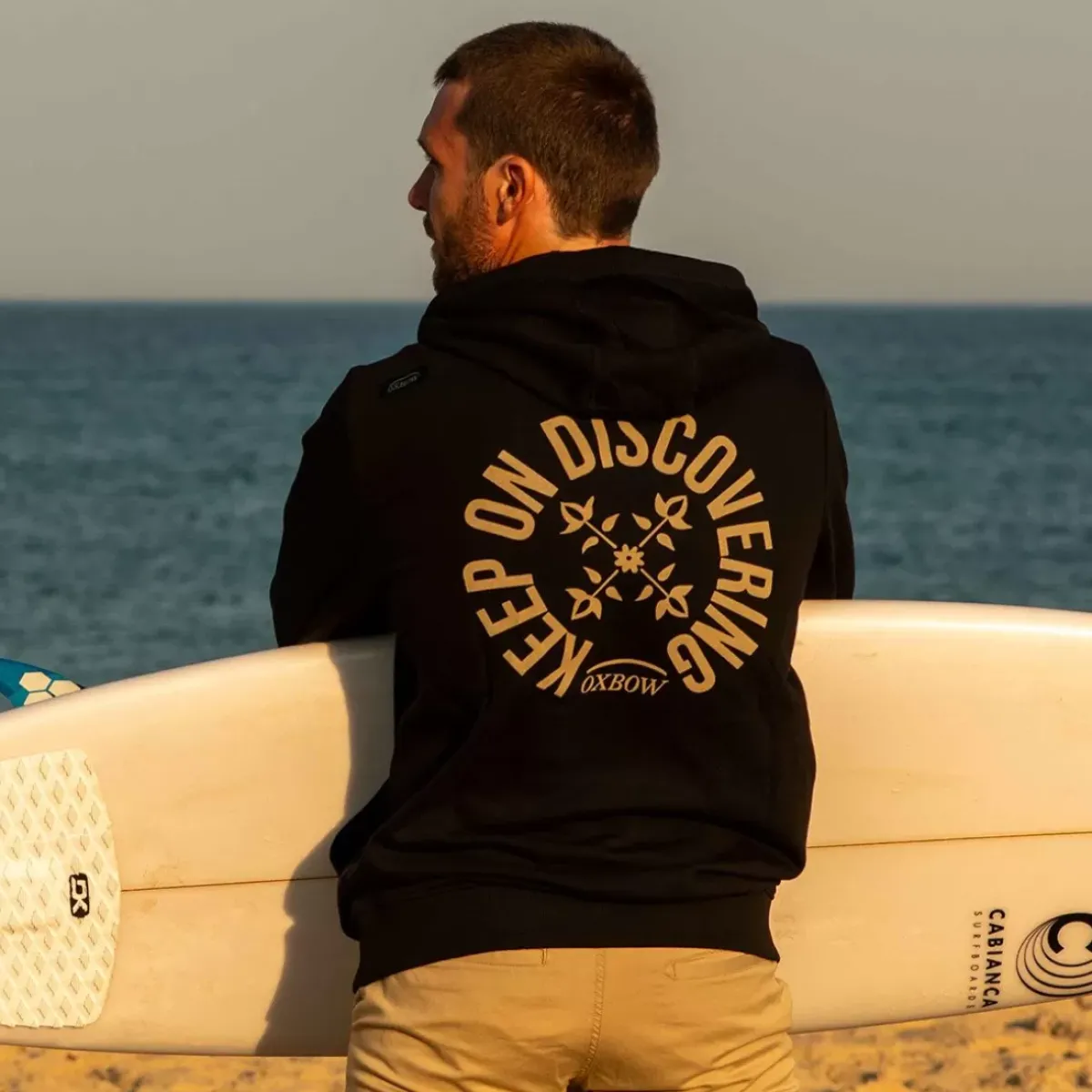 The SEKARL hoodie has a print on the back inviting adventure and exploration.
