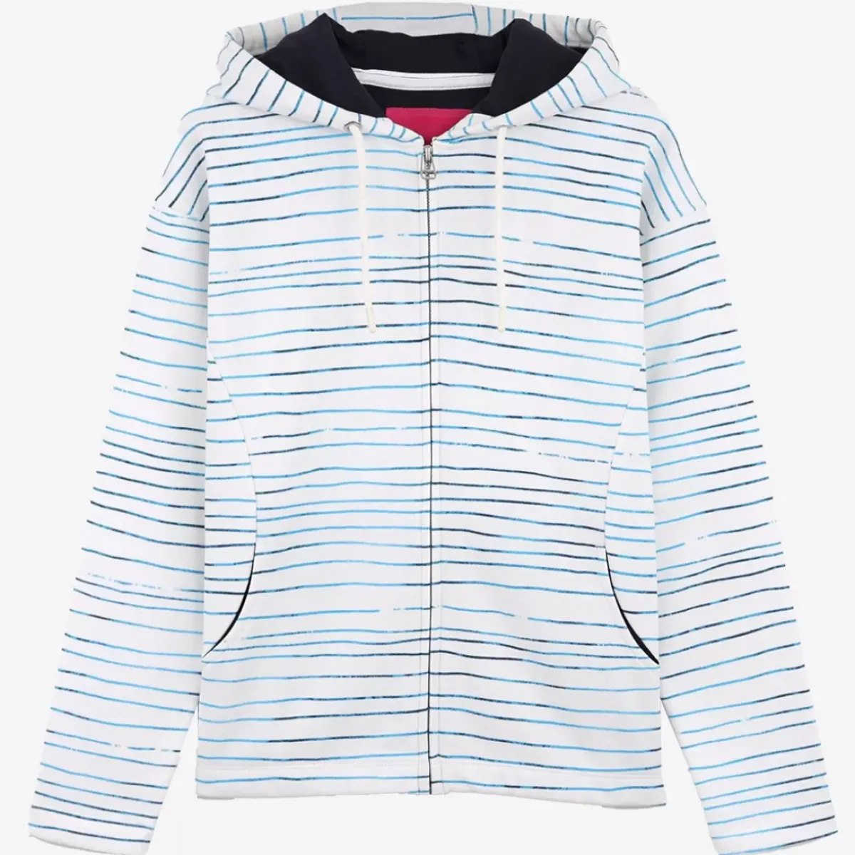 This hoodie has an exclusive stripe print design. With its scratchy fleece material and lined hood, you’ll feel like you’re wearing a plaid.