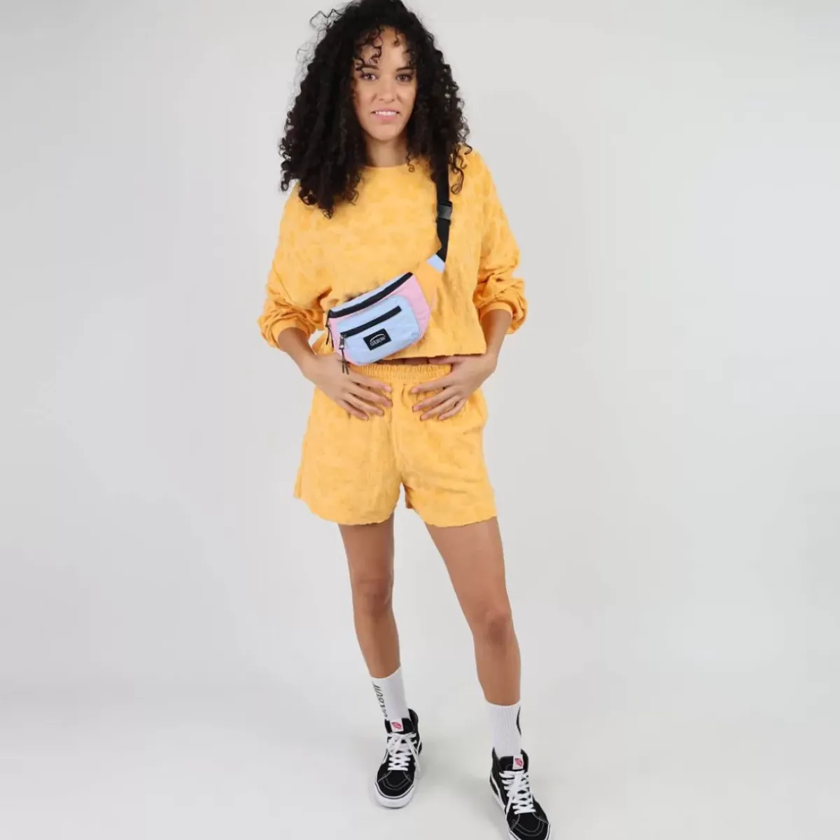 Jacquard terry towel crew neck