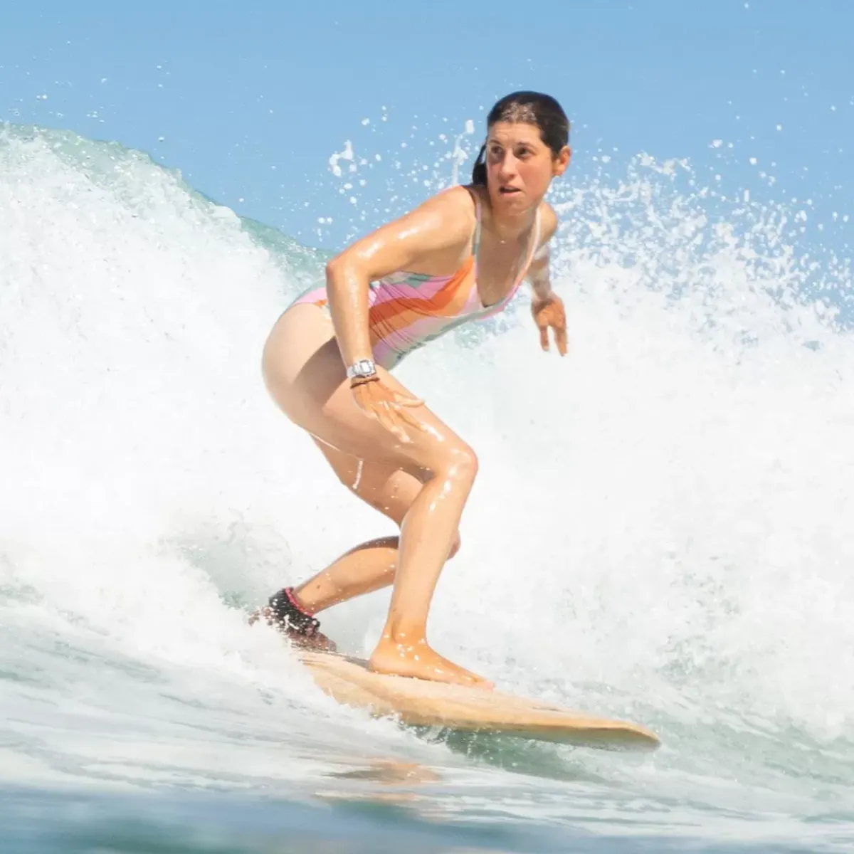 One-piece swimsuit without underwire, the MARISSA has a V-neckline that softens the silhouette. With its tie game to adjust, adapt the swimsuit according to your desires and your morphology.