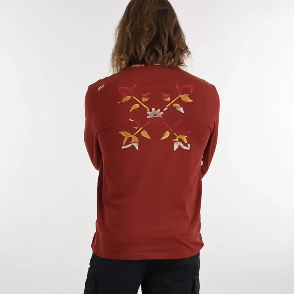 The TIRMOK long-sleeved t-shirt is made from organic cotton and features a printed pattern on the back featuring the multicolored 4 Flowers logo.