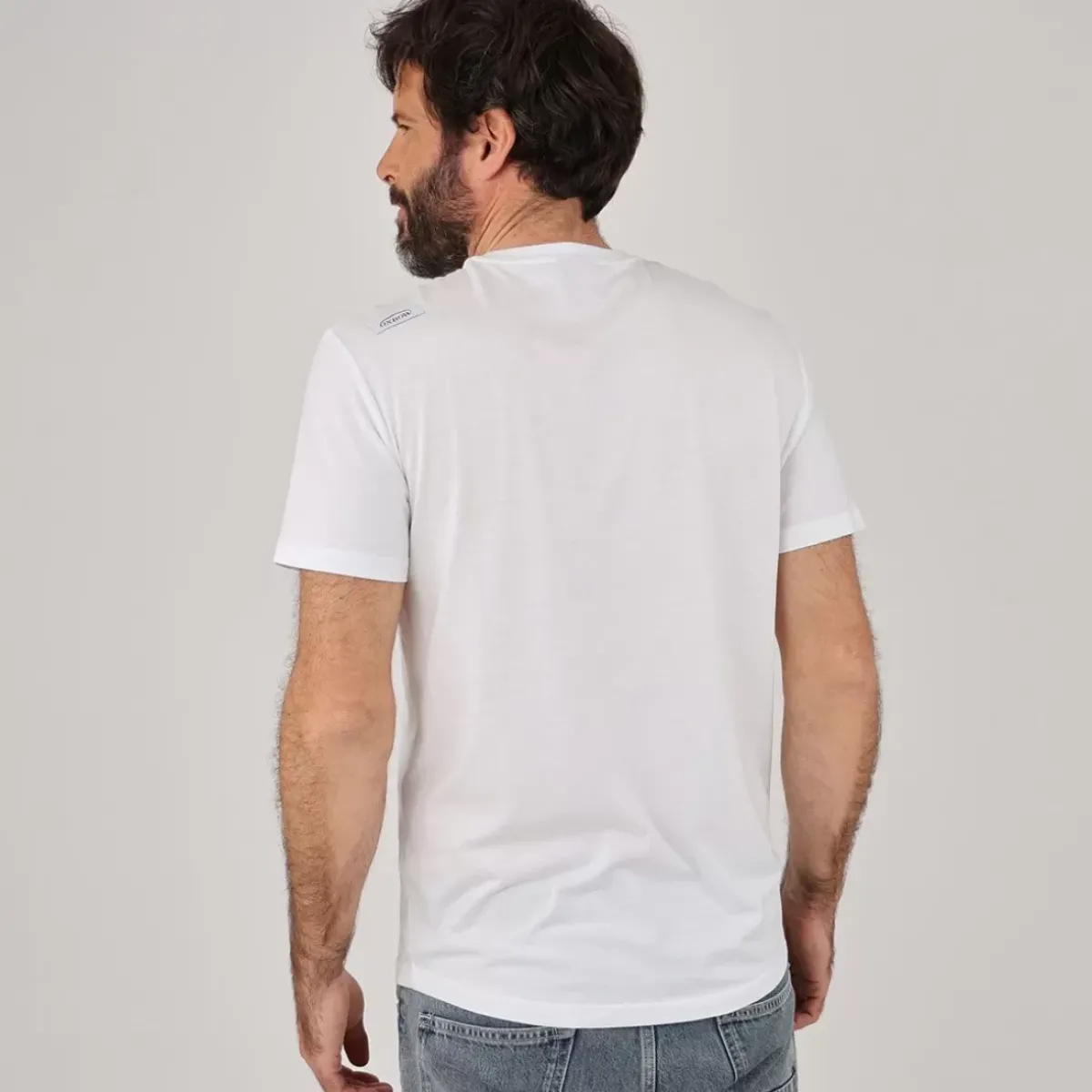 TORNAT is a short-sleeved t-shirt with simple, plain colors that can be worn every day, in all situations. It is distinguished by its extended back cut and its slightly rounded shape.