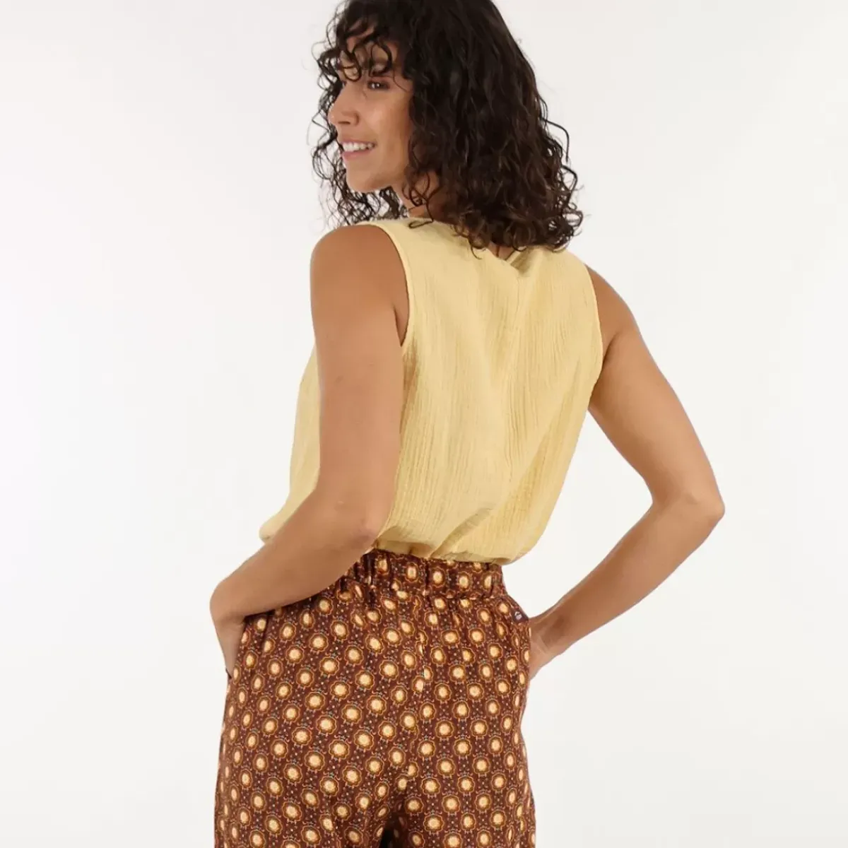 The CALLUMA cotton gauze tank top is dyed using natural dye pigments, for a very pleasant aged effect.