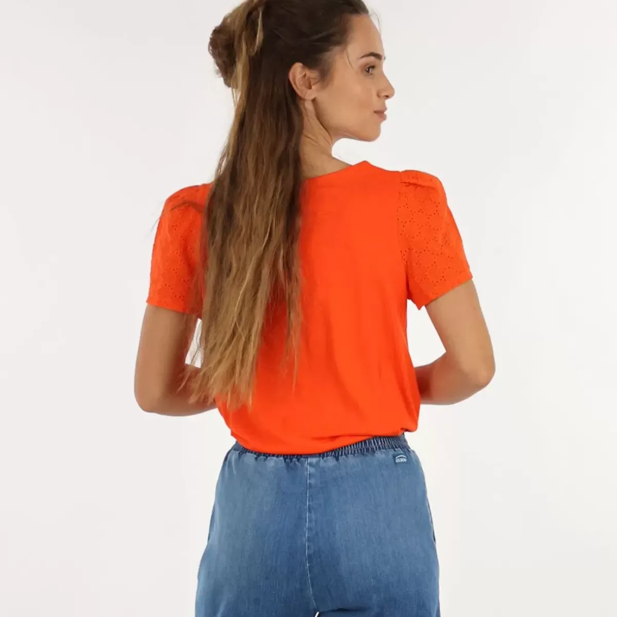 The TOSCAN t-shirt has short sleeves with English embroidery. With a classic cut, this t-shirt will go with any outfit.