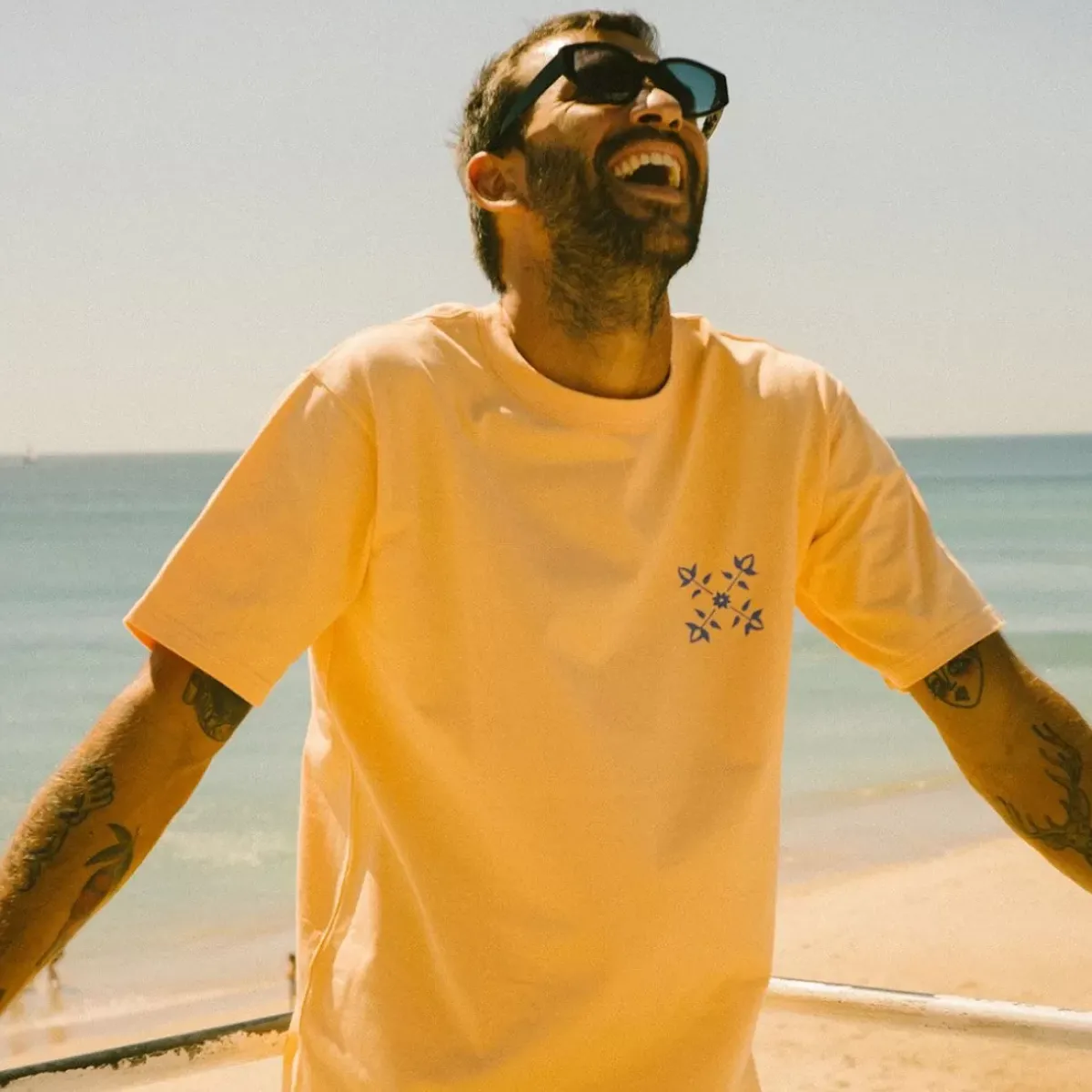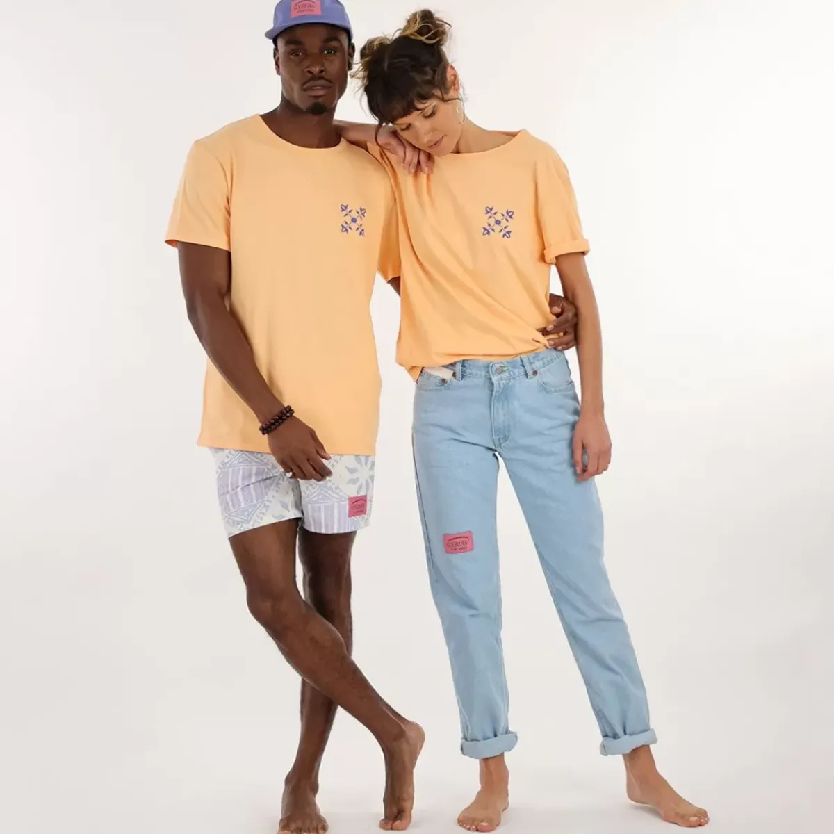 The iconic Oxbow t-shirt: made in France, a standard cut, a very heavy mesh of 250grs, the label on the shoulder, and a fourflower on the heart.