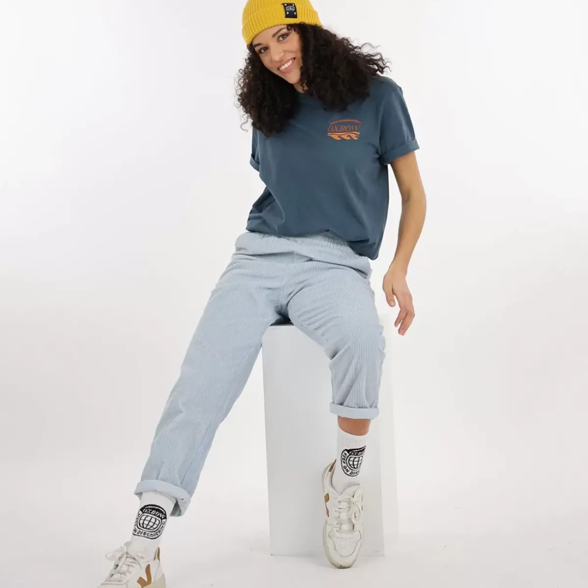 We love this original t-shirt with its rolled up sleeves. Wear it with wide, high-waisted pants and a pair of trainers for a casual look.